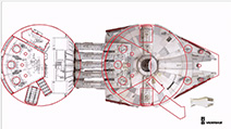 (Der Plan des Command Modules eines Battlecruisers Guadalcanal aus "Space: 1999" weist auch eine erhebliche Ähnlichkeit auf. Die Verflechtungen aus 2001, 1999, Brian Johnson und Star Wars