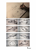 oder die frühe Entwurfskizze der Lockheed P-38 Lightning inspirierte mit ihrer Asymmetrie den Falcon...